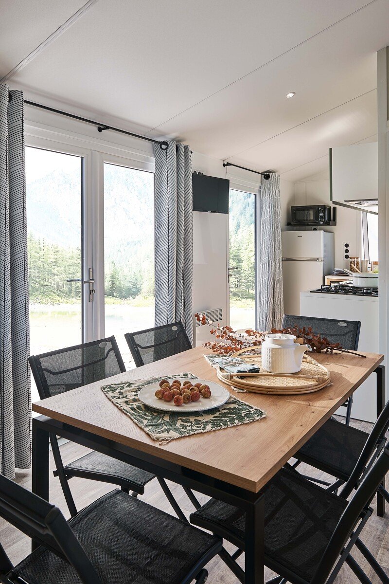 Un modèle indoor-outdoor, ouvert et tourné vers panoramique vers l’extérieur. La cuisine d’été est panoramique et fonctionnelle avec un coin repas des plus lumineux, positionné au plus proche de la terrasse et des ouvertures.